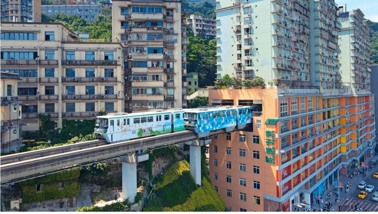 Liziba — это станция 2-й линии чунцинской монорельсовой железной дороги, встроенная в жилое здание: пути проходят через 6-й, 7-й и 8-й этажи 19-этажного дома. Линия была построена в 2005 году и является одним из символов инновационной транспортной системы Чунцина, адаптированной к гористой архитектуре города.