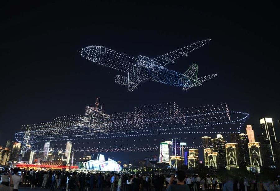 Высоко-технологичное зрелище: сотни дронов синхронизируются с лазерами и музыкой, превращая ночное небо Чунцина в сказку.