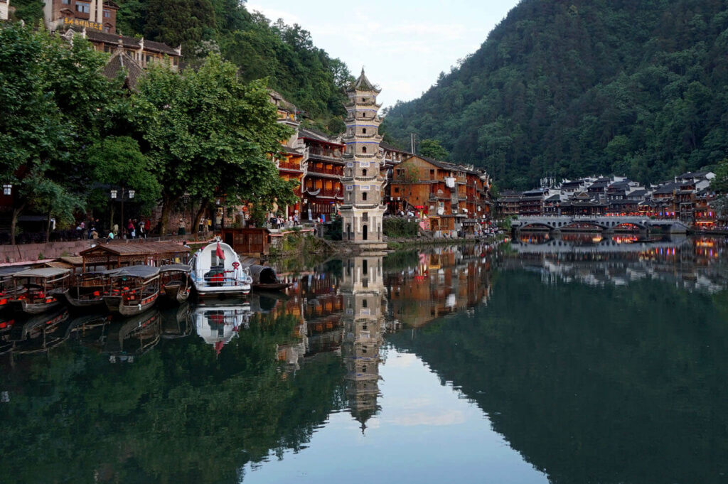 Фэнхуан очаровывает атмосферой «живой истории»: здесь можно гулять вдоль реки, наблюдать лодки, отражения старых домов в воде и повседневную жизнь местных жителей. Особый интерес представляют Северные и Южные городские ворота, старинные резиденции чиновников и традиционные лавки ремесленников. Вечером город преображается благодаря мягкой подсветке, превращаясь в одно из самых фотогеничных мест Китая. Это идеальное направление для тех, кто хочет почувствовать подлинный ритм древнего Китая без музейной статичности.