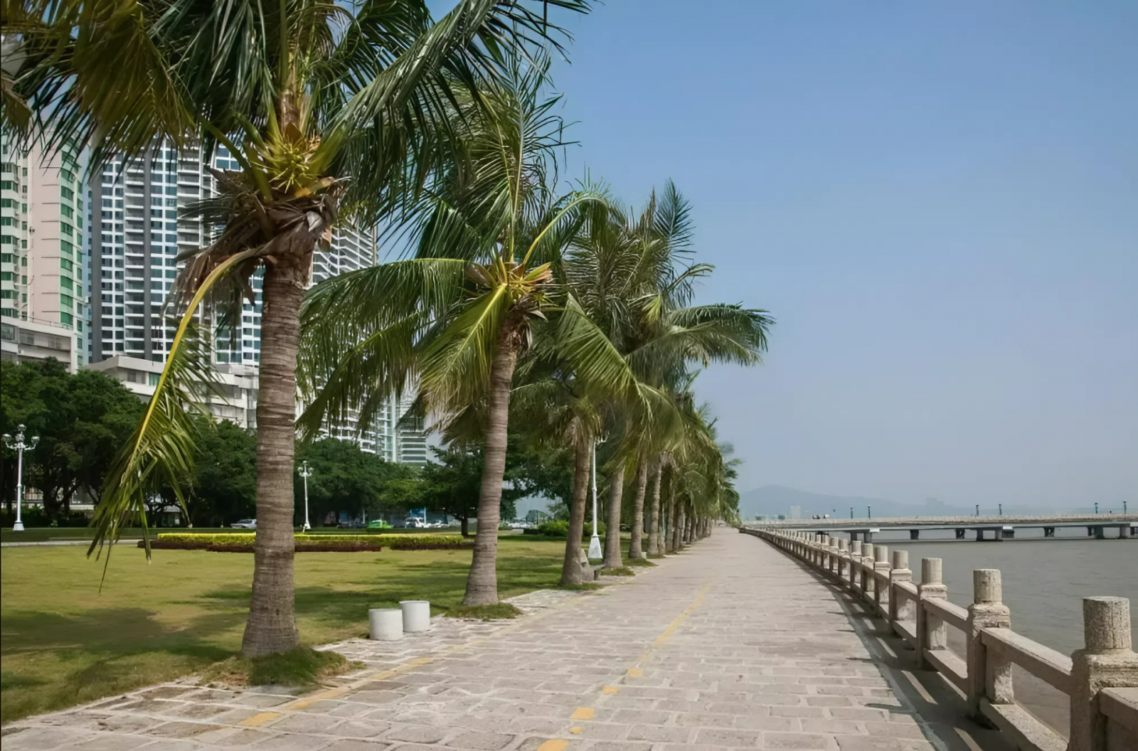 Чем интересна: Идеальное место для неспешных прогулок или катания не велосипеде, романтических закатов и вида на море. Здесь можно наслаждаться вечерним бризом, наблюдать горизонт Макао вдали и просто отдыхать среди зелени и пальм.