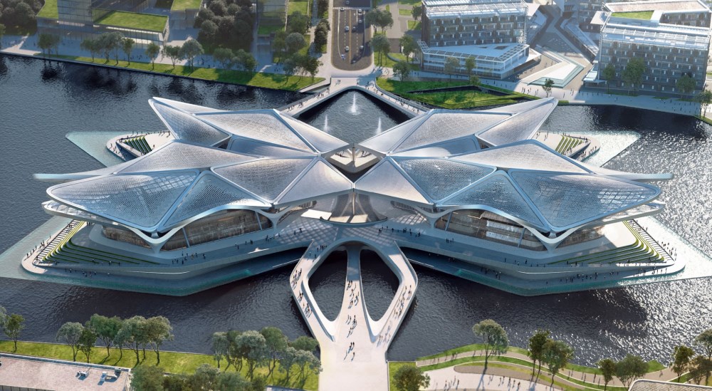 Основные факты: Zhuhai Jinwan Civic Art Centre — культурный комплекс берегу озера в районе Цзиньвань, созданный бюро знаменитой Захи Хадид. Он объединяет четыре пространства: Гранд-театр, “чёрный ящик”, музей науки и художественный музей. Здание стоит на ZhongXin и впечатляет динамичной крышей, .