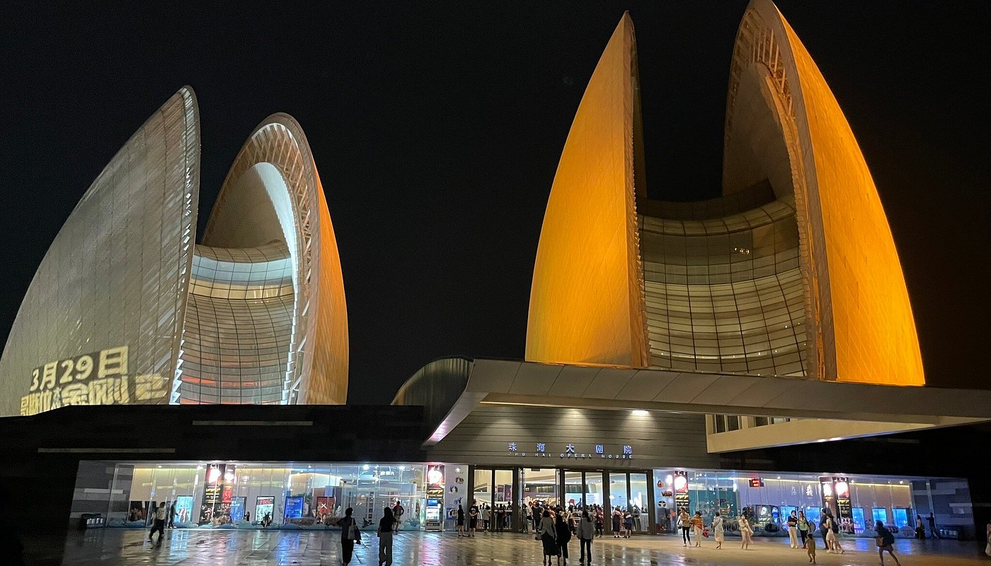 Основные факты: Zhuhai Opera House — первый и единственный оперный театр в Китае, построенный на острове. Он расположен на острове Юцзя (Yeli) у побережья Чжухая и стал новым символом города. Комплекс состоит из двух белоснежных раковин высотой 90 и 60 метров, символизирующих восходящее солнце и луну.