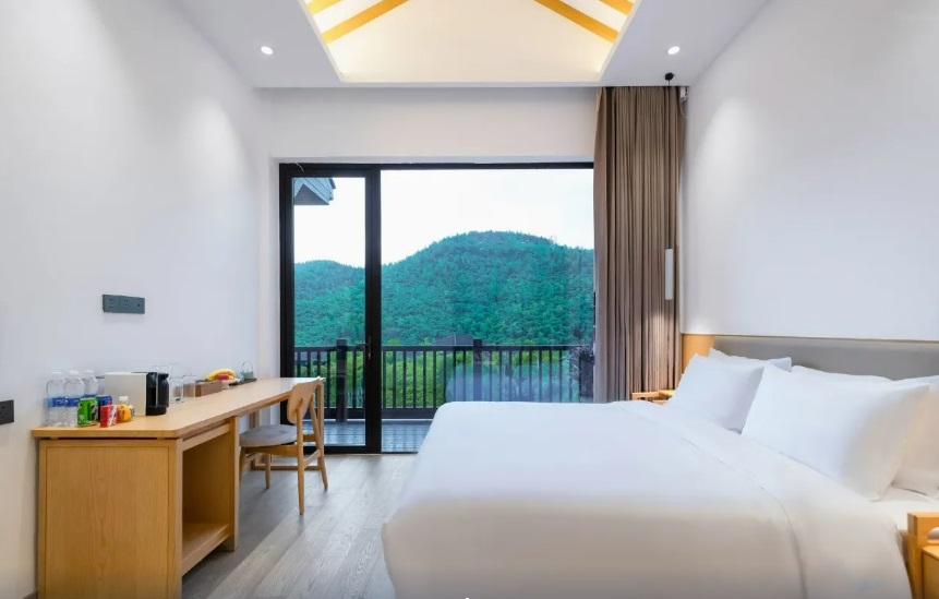 Отель удалён от центра города (около 17–20 км до железнодорожной станции Хучжоу), что обеспечивает уединённую атмосферу и делает его идеальным для отдыха на природе вдали от городской суеты.