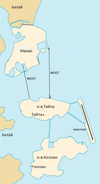 Собственно, территория состоит из полуострова и двух островов - см. карту Макао.